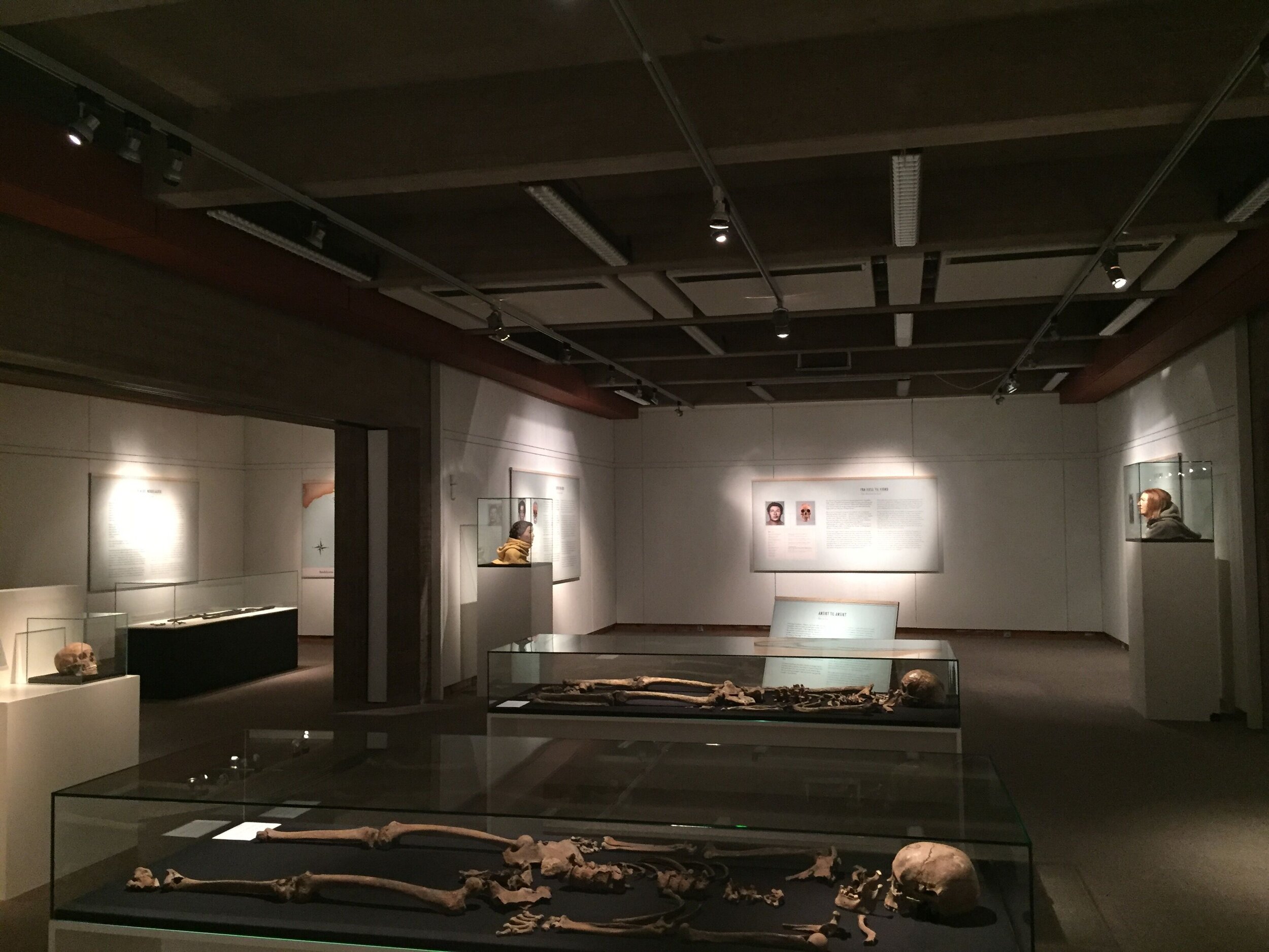 Formidling av eit forskningsprosjekt. Kva finn ein ut når ein forskar på eit skjelett? Vi ville at ungar skulle få ei spesiell oppleving i utstillinga og kjøpte inn forskarfrakkar, briller og anna utstyr. Det blei laga eit eige hefte med oppgåver dei skulle løyse. Premien var ein “tatovering” av ein hovudskalle. Det var og ein stasjon i utstillinga der ein kunne få vite meir og/eller ein kunne laga sitt eige “sprellemannskjelett”. Bymuseet i Bergen i samarbeid med Universitetet i Bergen. Grafisk design Tine Fuglseth.
