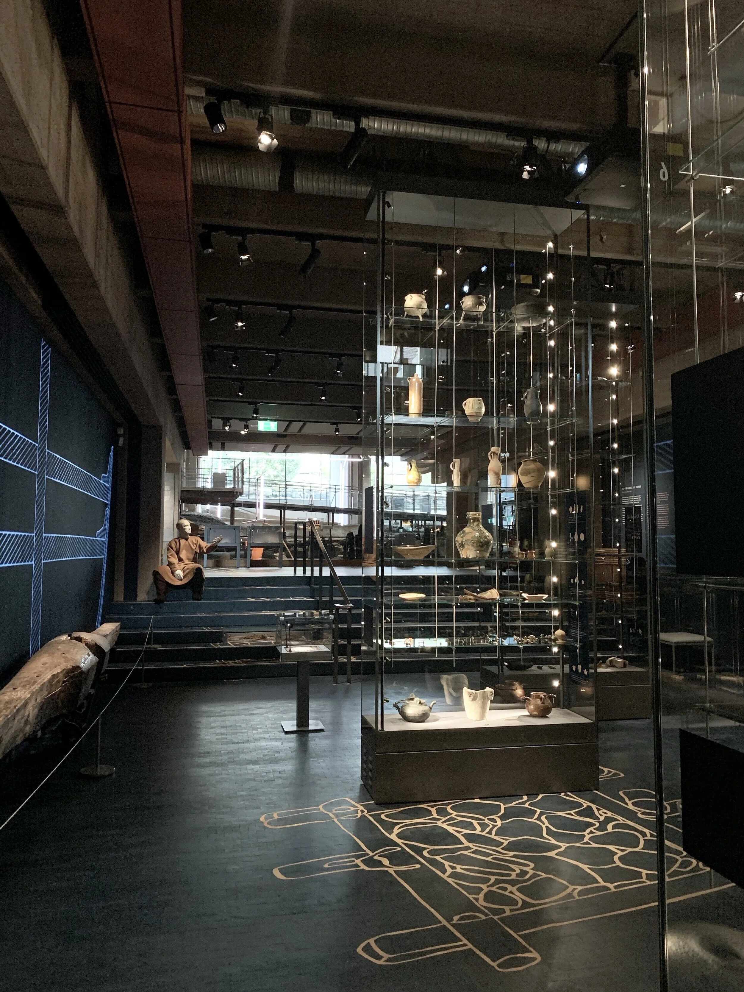 Vi ville at historia om utgravingane som fann stad på 50- og 60-talet skulle vere ein inngangsport til utstillinga. Det vart tidleg tenkt inn ei rampe som skulle føre ned til utgravingsfeltet som ein tidstunnel, her skulle ein få kjensle av å gå ned i tid gjennom brann og kulturlag og bygningsrestane skulle iscenesetjast. Det vart tatt i bruk virkemidlar som lys, lyd, lukt og animasjonar og tenkt varige enkle teknologiske løysingar. Hoveddelen av utstillinga er gjenstandsbasert. Utstillingsarkitekt arbeidde tett med arkeolog og konservator for å finne dei beste materialane og den mest skånsomme måten å vise funna på. Det vart og laga ei mengde kopiar til å ta på, desse for det meste til bruk på formidlingsrommet som og var ein del av prosjektet. Innreiing til butikk og formidlingsrom vart teikna av Haltenbanken i dialog med arkitekt og utstillingsarkitekt. Det vart laga ei eiga løype for born, denne var tenkt inn frå starten. Vi arbeidde med brannlag/kulturlag som ein gjennomgåande idé og ynskte at ein skal få kjensle av at gjenstandane ligg i lag under jorda.